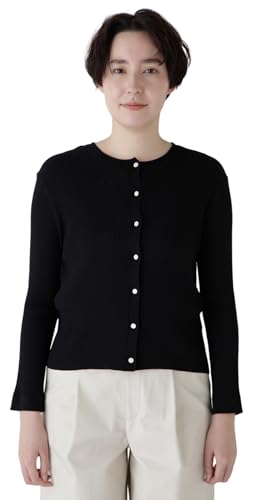 - クルーネックで上品にまとまり、羽織りにも前閉じにも使える