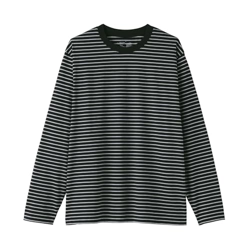 無印良品 紳士 天竺編みクルーネック長袖Tシャツ (ボーダー) メンズ AB1MLA6S 黒柄 L