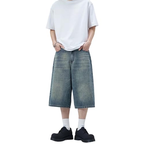 • ラフで存在感のあるコーデを作りたいなら [KULIXI] デニムパンツ 七分丈 ハーフパンツ ワイド メンズ レディース 夏用 ウォッシュ加工 ゆったり ストレート ジーパン ショートパンツ カジュアル ストリート系 韓国風 バギーパンツ 718 レトロブルー L が向いている