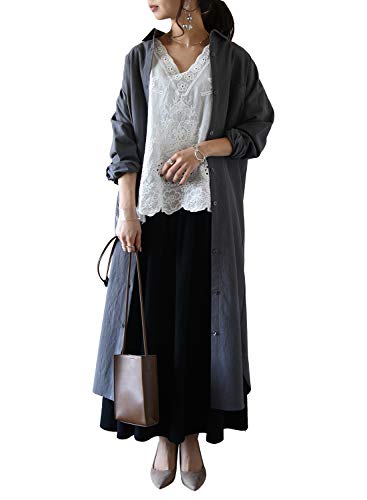 [アンドイット] スキッパー&ベーシック 長袖ロングシャツワンピース レディース (M, 3チャコ-ル/ベ-シック)