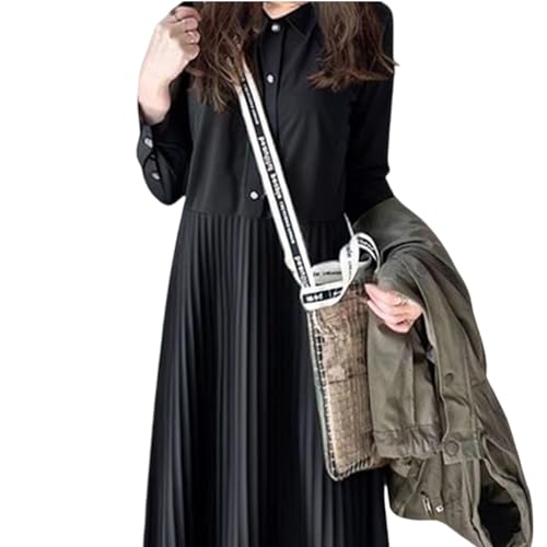 [Grcemlvfe] シャツワンピース レディース 短い袖 ロングワンピース プリーツ Aライン 襟付き 体型カバー 可愛い 夏 カジュアル ゆったり 大人 可愛い レイヤード用 切り替え 長袖 無地 体型カバー 着痩せ ゆったり カジュアル