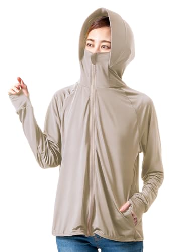 [Goodfeel] ラッシュガード レディース UVカットパーカー 接触冷感 夏 ラッシュパーカー 長袖 フード付き UPF50+ 日焼け対策ウェア アウター 軽量 通気性 体型カバー