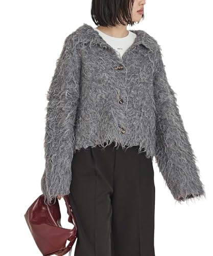 [miette] モヘアライク 襟付き ショート カーディガン RGXX1327 レディース M グレー