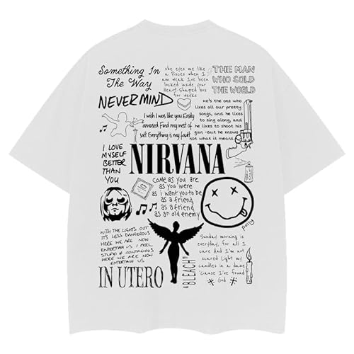 [GUALIU] ニルヴァーナ プリントTシャツ カートコバーン ロックバンド NIRVANA メンズ 音楽 綿 100% 白 ゆったり コバーン tシャツ 丸首 吸汗速乾 スポーツ 男女兼用 非公式 (M)