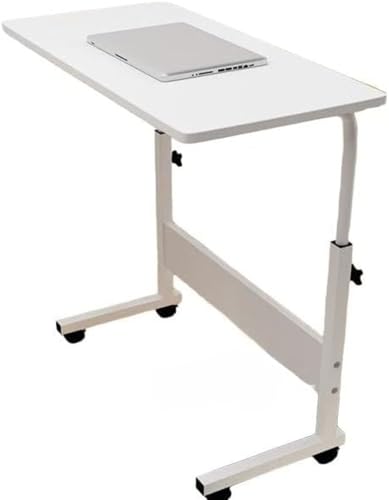 Mearrineser 昇降サイドテーブル 移動式サイドテーブル キャスター付き ブレーキ付 パソコンデスク 手動昇降式デスク ゲーミングデスクデスク コンピューターデスク 学生机 移動可能 昇降可能 マルチシーンに対応可能 (ホワイト)