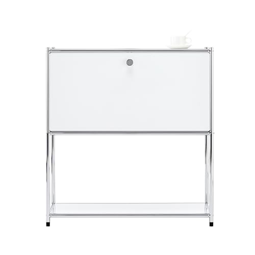 モジュール2段 サイドボード 収納キャビネット モジュール家具 フリップトップキャビネット ベッド周り収納 ナイトテーブル 韓国インテリア サイドテーブル 韓国家具 収納 (ホワイト)
