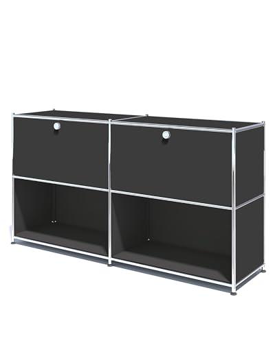 SimpLink サイドボード 金属製 キャビネット 幅152cm × 奥行40cm 大容量収納 フラップ扉付き 北欧風 おしゃれ 組立簡単 リビング・オフィス用, ブラック
