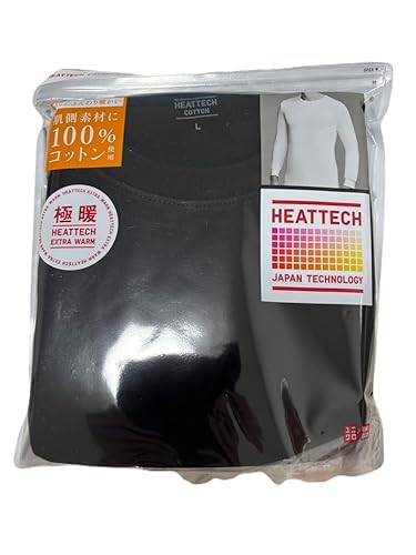 ユニクロ ヒートテッククルーネックT 9分袖 メンズ インナー 軽量 薄手 保温 防寒 男性用 (JP, アルファベット, L, 極暖(ブラック))