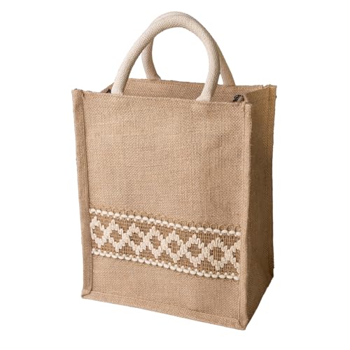 [KSYN KO-KO] ジュートトートバッグ 麻布バッグ 麻トートバッグ 耐久性のあるハンドル 補強されたボトム、内部ジッパーポケット 高さ28 x 幅13.2x 奥行22.5 ショッピング 特別な場面に最適