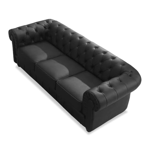 MULOCO チェスターフィールドソファ ドイツ製 イタリアンレザー (ブラック, 三人掛け)