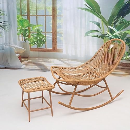 ロッキングチェア 室内 ゆらゆら 揺れる椅子 ラタン 北欧 揺り椅子 耐荷重150kg 転倒防止 座り・寝転び両用摇摇椅 頑丈で耐久性 ガーデンファニチャー 庭 ベランダ テラス リビングなどに適し (A+オットマン付き)