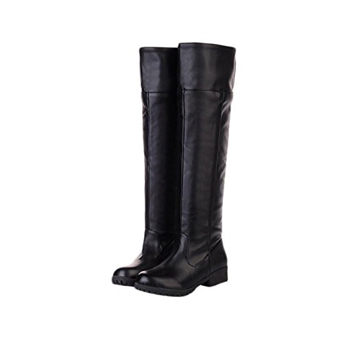 [ファッション メーカ] ブーツ レディース ロングブーツ ロング丈 ブーツ ローヒール 美脚 ブーツ 合皮 通学 美脚 pu 太ヒール ハイヒール カジュアルシューズ ブラウン (27cm(44), ブラック)