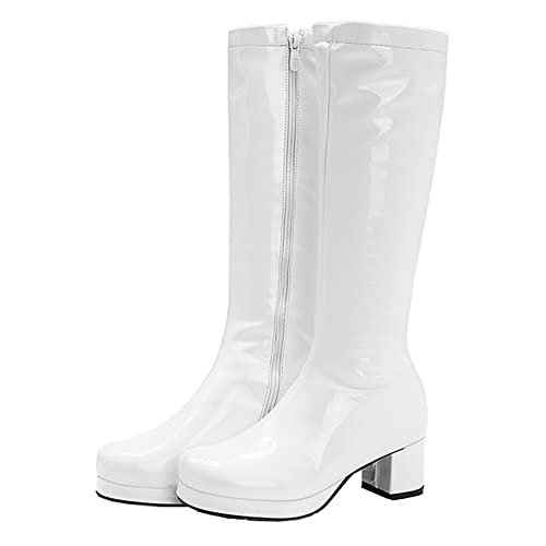 ロングブーツ 白 レディース ローヒールブーツ 白 チャンキーヒール ブーツ 5cm 太ヒール ブーツ 美脚 シューズ ダンスブーツ 白 大きいサイズ 小さいサイズ 長靴 白ロング コスプレブーツ 白 イベント ハロンウィン (23.5, ホワイト)