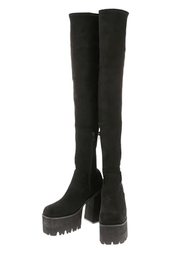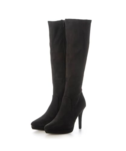[DMTR]ポインテッドトゥ プラットフォーム ストレッチ ロングブーツ レディース dm690-L29 (ブラックスエード, LL)