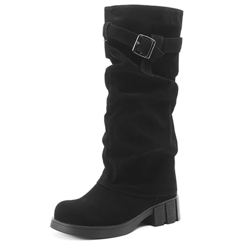 [KiniYitta] スクエアヒール エンジニアブーツ レディース 歩きやすい スエード ロングブーツ くしゅくしゅ 仮装 クラシック ラウンドトゥ 通勤