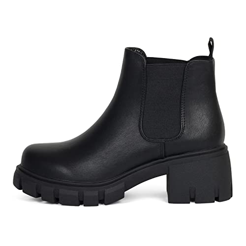 CARMEN ~ Kassie Daniela ~ レディース ラグソール ミッドヒール チェルシー ファッション アンクルブーティー ダブルエラスティックゴア, ブラック, 24