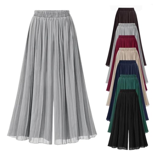 [Denaiou] パールシフォンプリーツビーチパンツスカート シフォンパンツ ワイドレッグ 2WAY着用可能 9分 ハイウエスト ウエストゴム 通気性 透け防止 ボトムス 大きいサイズ ゆったり 体型カバー 脚長 体型カバー おしゃれ 普段着(ライトグレー,as7,alpha,4x_l,)