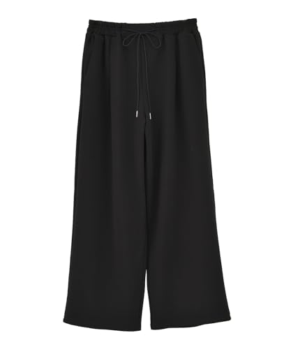 楽ちんリップルワイドパンツ ブラック F