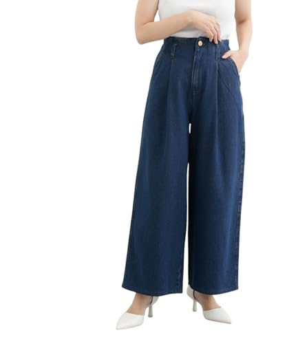 [ニッセン] パンツ 小さいサイズ 綿100%ウエストタックハイウエストワイドデニムパンツ 低身長さん・小柄女性 レディース ネイビー PM