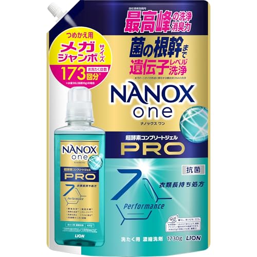 NANOXone(ナノックスワン) プロ 詰替メガジャンボ1730g パウダリーソープ 菌の根幹まで遺伝子レベル洗浄で最高峰の洗浄・消臭力 洗濯洗剤 色変化防止 抗菌 ウイルス除去 洗濯槽のニオイ抑制 ダメージケア ジェル