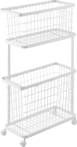 山崎実業(Yamazaki) ランドリーワゴン + バスケット スリム ホワイト W24.2×D54.1×H90.4cm(キャスター含む) タワー tower 2段 ランドリーバスケット 洗濯カゴ 8464