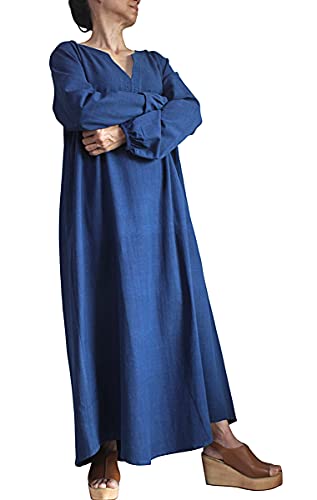 [さわん] ジョムトン手織り綿のカミーズロングドレス インディゴ染