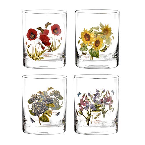 Portmeirion Botanic Garden double old fashioned tumbler floral glass set of 4