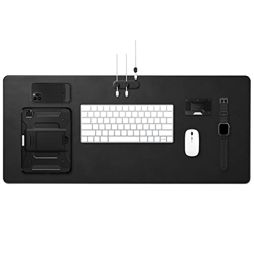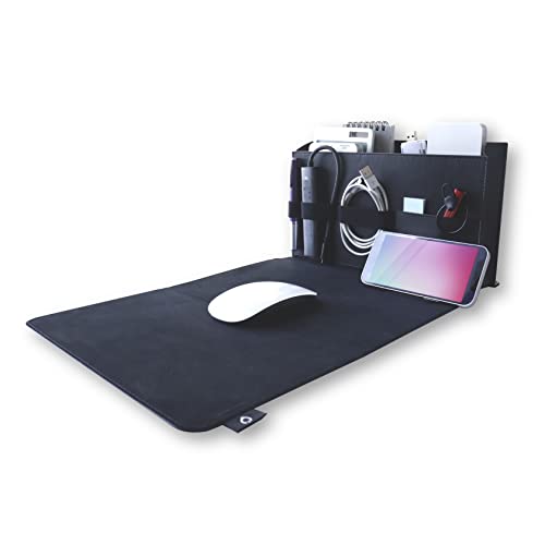 ONSURU マウスパッド付きスタンドポーチ Lサイズ ブラック デスク 収納 ボックス PC周辺 リストレスト ノートパソコン マウス スマホスタンド オーガナイザー トラベル ガジェット テレワーク リモート モバイルワーク 正規品 高級PUレザー アダプタ ケーブル電源