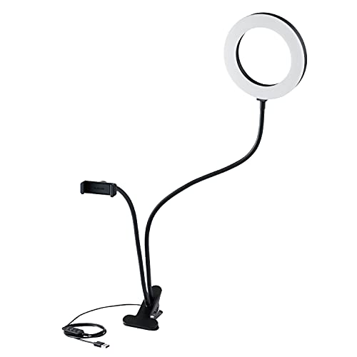 エレコム LED リングライト クリップライト 16㎝ 3色モード / 10段階調光 USB給電 ブラック DE-L01BK