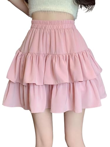 [ブブ オーハナ] ティアード スカート ミニ 膝上 丈 フリル ふんわり シルエット Aライン 裏地 付き レディース 女性 用 春 夏 秋 冬 服 物 ウエスト ゴム ストレッチ 伸縮 性 ミニスカート 無地 シンプル カジュアル (M, パステル ピンク)