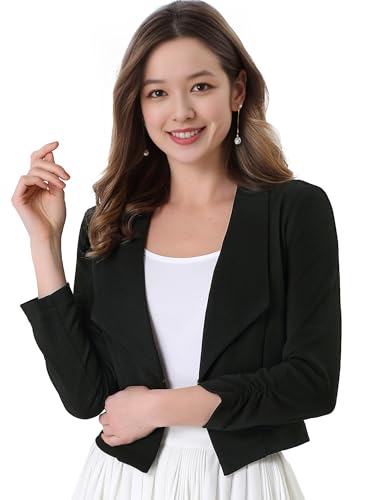 [Allegra K] ショート ジャケット クロップド ブレザー 前開き オフィス 事務服 無地 レディース ブラック M
