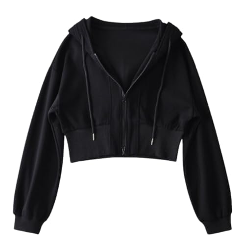 [Belle Cie] パーカー スウェット ジップパーカー フード付き ショート丈 長袖 レディース (ST/No.22083) (JP, アルファベット, Free Size, ブラック)