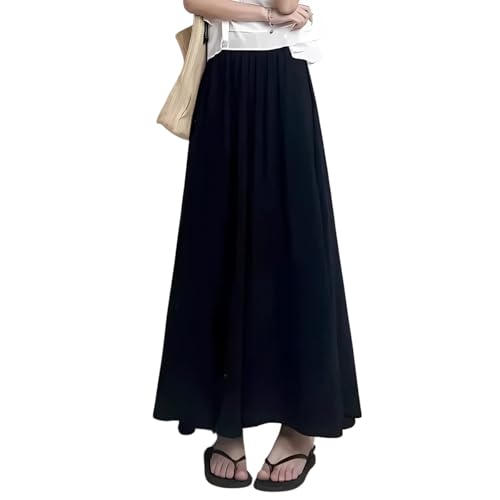 [OZBERLI] レディース ガウチョ ロング フレア パンツ スカーチョ 体型 カバー ウエスト ゴム ゆったり 夏 涼しい 無地 おしゃれ お洒落 可愛い かわいい ガウチョパンツ キュロット ロングパンツ ワイドパンツ スカパン スカート マキシ 大きい サイズ 韓国 透け (JP, アルファベット, M, ブラック)