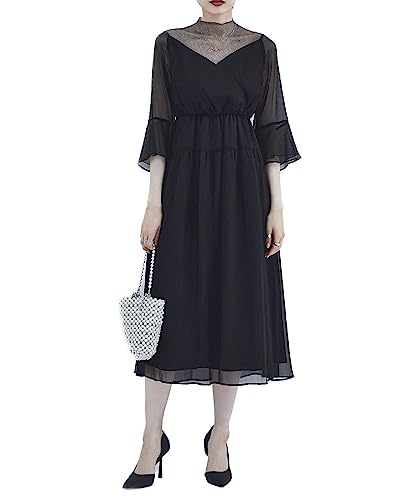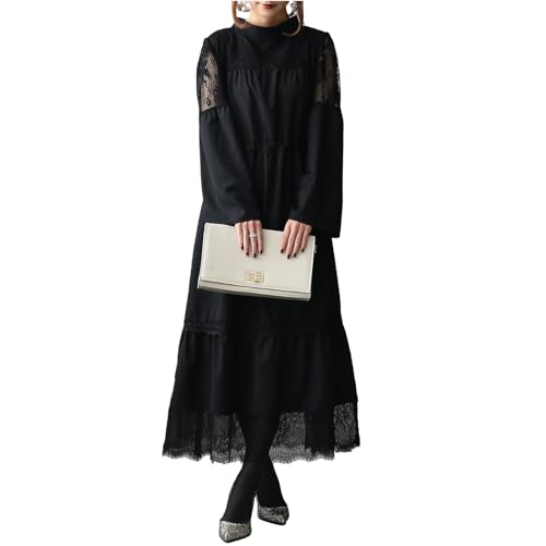 ロングワンピース レディース 秋 春 フェイクレイヤード ミモレ 長袖 Aライン 体型カバー 着痩せ 切り替え リボン おしゃれ きれいめ カジュアル lisusut ロングワンピース 花柄 ワンピース 長袖 レトロ 森ガール レディース ワンピース パフスリーブ vネック 春 夏 秋 マキシワンピース ハイウエスト ドレス 大きいサイズ デート ビーチ お出掛け 旅行 リゾート 春夏 (M/ブラック)