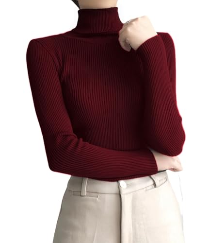 [Dreambuilder] ニット タートルネック セーター ハイネック リブ レディース 長袖 重ね着 シンプル おしゃれ カットソー シンプル インナー 秋 冬 (JP, アルファベット, Free Size, ワインレッド)