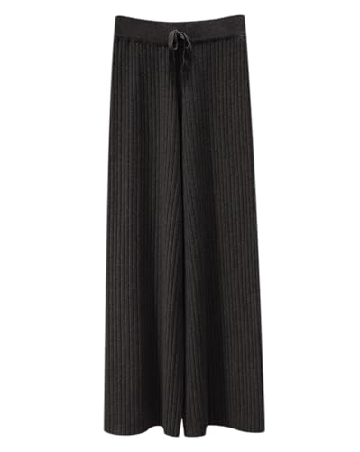 [Minesam] ニットパンツ レディース 秋冬 リブニット ワイドパンツ 冬 ウェストゴム ゆったり 暖かい (ブラック,Free)