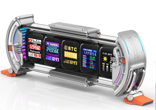 Divoom Times Gate 5Wayデジクロック スチームパンク風 PCデスクを彩る 近未来 ガジェット RGBライト【5スクリーン自由DIY:時計/天気予報/ピクセル作品/写真/SNSファンの数/カレンダー など対応】専用アプリ WiFi接続 ゲーマーのプレゼント(チタンシルバー)