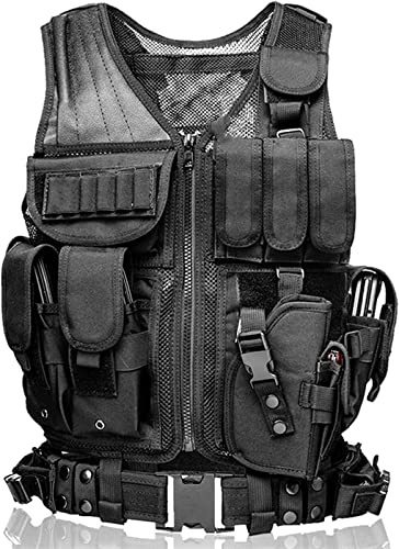 [kuroobaa] タクティカルベスト サバゲー サバイバル ベスト ミリタリー マルチカム 戦術ベスト 収納可能 (ブラック)