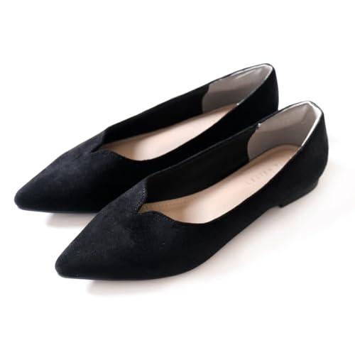 [アミアミ] パンプス Vカット フラットパンプス 1.2cmヒール レディース 歩きやすい 美脚 FX2014 (36(23.0cm), ブラック(スエード))