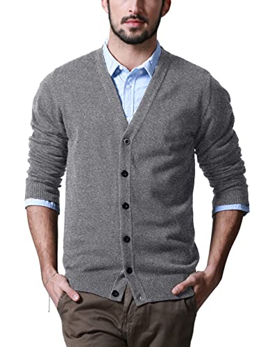 [Match マッチ] カーディガン メンズ ジャケット Vネック セーター コットン ニット シンプル 無地 綿 長袖 ボタン 春秋冬 ビジネス トップス カジュアル 大きいサイズ(M, ミディアムグレー)