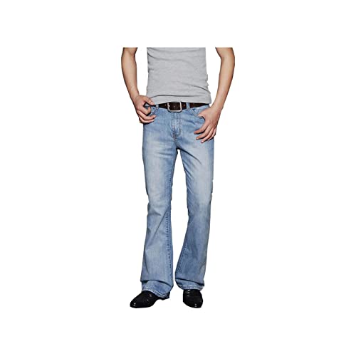 Pioilj デニムパンツ メンズ ライトブルーメンズビッグフレアジーンズブーツカットレッグズボンルーズオスデニムジーンズベルボトムジーンズ (Color : Sky blue, Size : Size33)