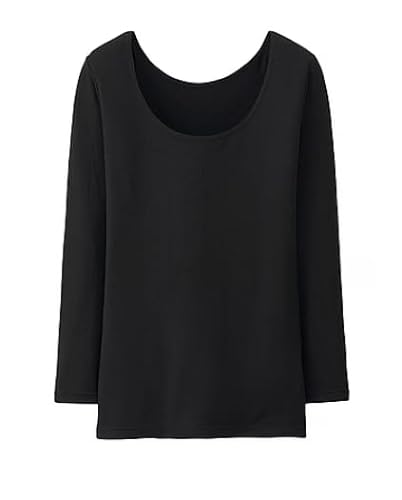 【極暖】ユニクロ ヒートテックコットン UネックT 8分袖 レディース インナー 女性用 (ブラック, L)